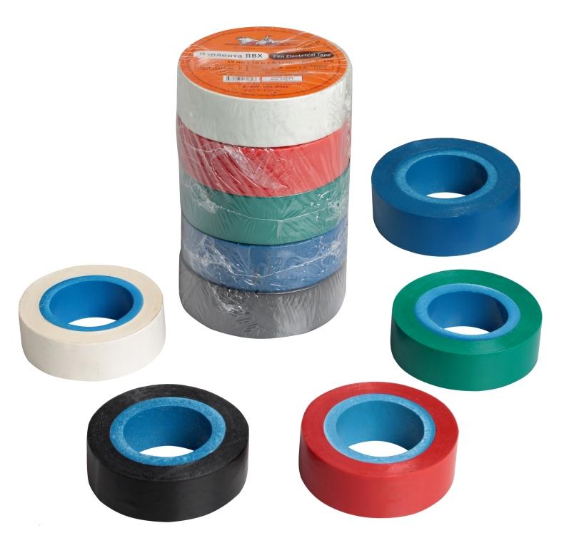 Изолента ПВХ, набор 5 шт.(син.,чёр.,кр.,зел., бел.), 19 мм*10 м (AIT-P-17K) AIT-P-17K